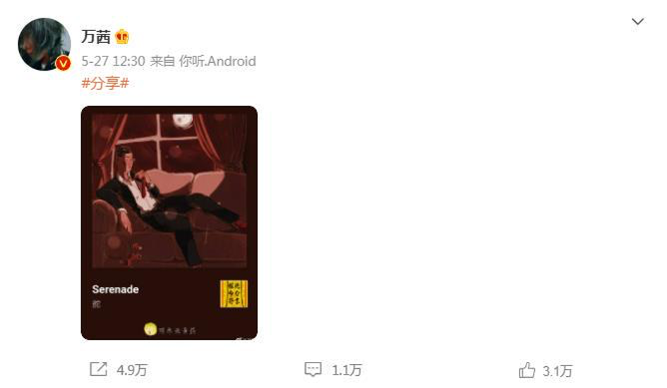 小编最近发现一件事,作为演员的万茜喜欢在微博上分享音乐,逐个打开音乐细听后,发现真的都是宝藏歌单,感觉自己完全被万茜安利了。