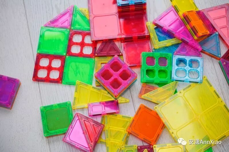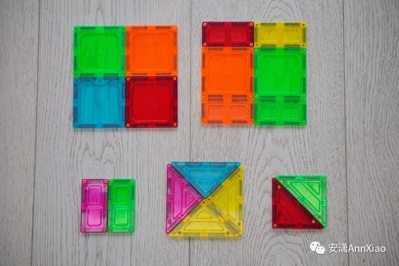 磁力片因为每一块都是平面的,可以让孩子观察到平面几何的规律。