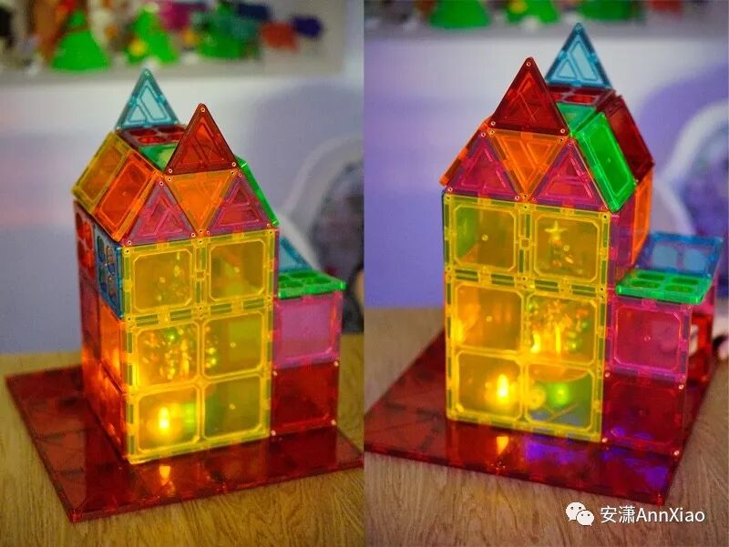 磁力片除了磁力特征,和其他的积木最不同的一点,就是其透明性。