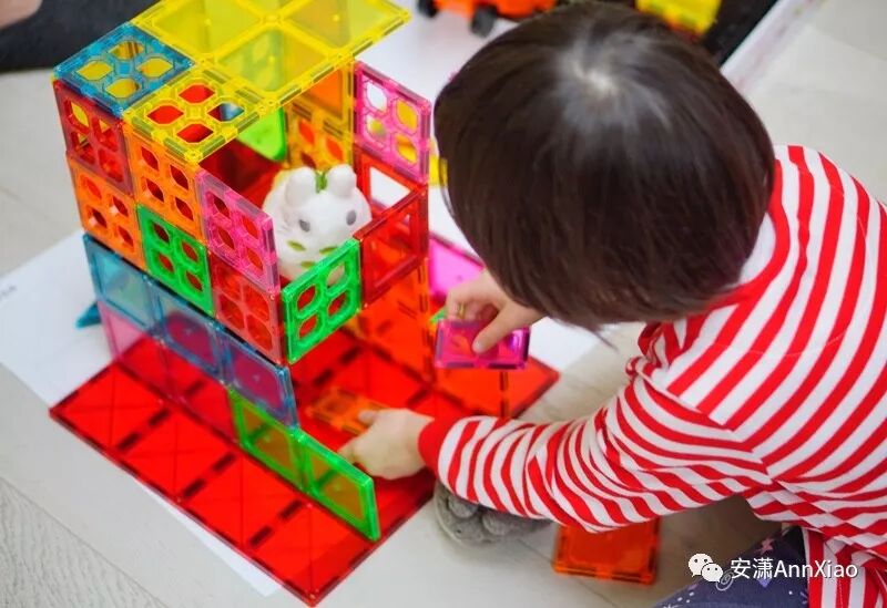 由此,磁力片是从1岁半开始,一直到入学以后的大孩子,都可以玩的,是跨年龄度比较高的搭建类玩具。