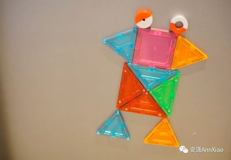 因为磁力片有磁力,可以在冰箱上或者磁力墙膜上进行拼图游戏。