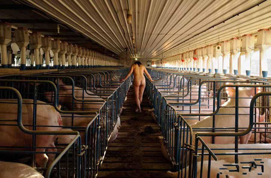 她全身赤裸呆在一个玻璃制的猪圈里,与两只小猪同吃同住104个小时,供游客们任意参观。http://www.zsnews.cn/data/photo/Backup/2011/12/04/tn_20111241152557382.jpg