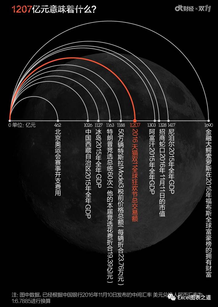 前段时间双11之后,第一财经曾发过这样一幅图表,新颖、漂亮,吸引眼球。