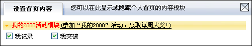 2、在每位用户的“个人信息”组件下方增加了我的2008徽章,并另外增加了两个新的组件:“我记录”和“我突破”。(如下图)