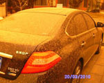 20日的北京,人们一觉醒来,都惊讶地发现整个天空呈现奇异的明黄色。强浮尘天气从昨夜开始横扫京城,马路上、汽车上、自行车甚至花草树木上都附着一层明显的黄沙,博友们拿起相机纷纷记录。