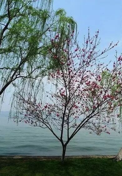 心急如焚。想出去,春天总是很短。我每年这个时候都会去西湖边看一棵桃树和一棵柳树。每年。恭敬的对它们表达问候和赞美。