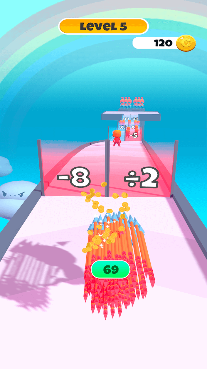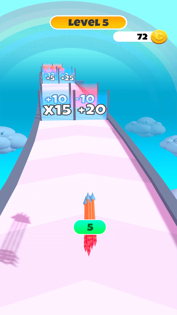 《Arrow Fest》(你能有多箭)是由Rollic Games推出的弓箭题材动作跑酷休闲免费手机游戏。玩家在游戏中控制飞箭选择适合的路线,在跑酷的过程中配合益智玩法扩展自身数量,摧毁前进路线上的敌人,在关底获取最大的箭数以击杀所有敌人,成为一位控制飞箭的高手。