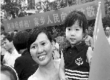刘洋父母同社区邻居一起分享成功的喜悦。