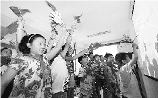 在郑州十一中,500余名学生在多功能厅集体收看了整个发射过程。“郑州十一中全体师生祝贺神九发射成功!”“祝刘洋学姐圆满完成任务!”的祝福条幅挂满了大厅。十一中校长王新顺介绍,学校在上午就布置好了直播观摩厅,很多学生都是自发赶来的。看到学姐顺利飞天,多功能厅里一阵欢呼。随后,学生们还自编自演了精彩节目。