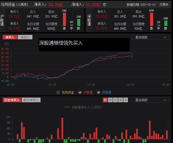 资金,场外资金虽然上涨,,但是同时也是存在大周期顶部的可能,或许后面是震荡不下跌,但是这也是市场风向转变的一个标志;北向资金最能说明问题,前面一直是沪股通领先买入,现在到了深股通买入领先,这是科技板块或者中小市值说话的开始。