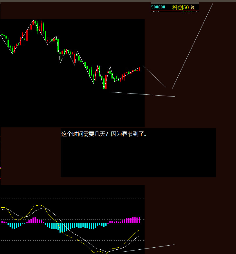 指数,传统出现日线底部后还没有出现最主要的下跌,其实可能也就是宽幅震荡,因为这里从大趋势来讲是牛市中间阶段,还没有真正展开牛市第三阶段,市场指数还没有完成一个阶段底部,所以科技为代表的中小市值股票没有止跌拉升,但是随着时间推移,我们看到阶段下跌的30分底部正在构筑,但是因为春节原因,这个最终时间不太好说,但是归途就是缓跌做底。