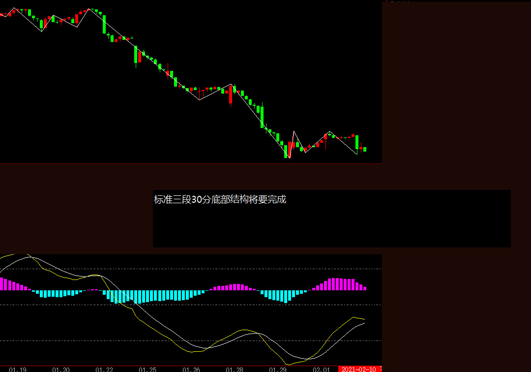 指数,传统指数还是顶部的震荡,虽然现在没有形成空间下跌,但是时间远没有到达止跌,所以这里越不下跌越有问题,越要害死更多散户,因为大家都不相信白酒要跌的时候,那么喝上酒醉了,哈哈。市场指数我们说的30分底部正在构建,这个时间今日完成不了,明日很有希望完成,所以我们需要看明日。