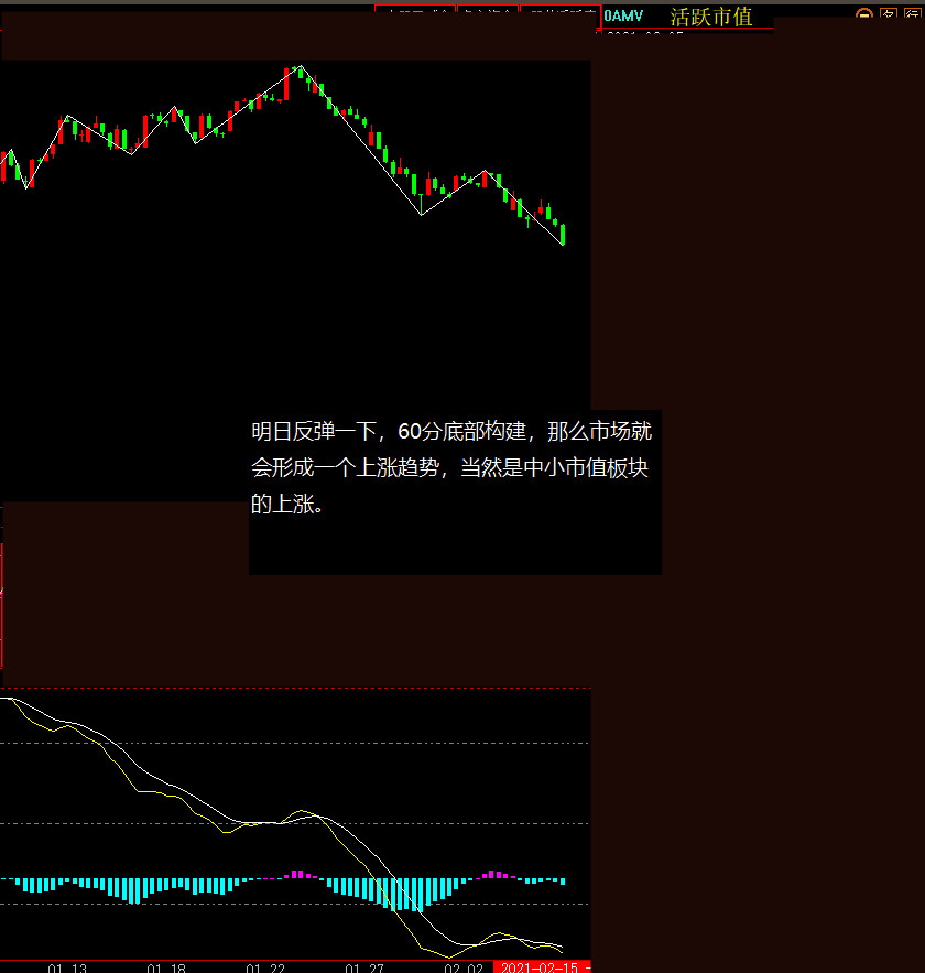 今日市场继续下跌,那么我们说的期待阳线见底不成立,那么还是要走正常的见底道路,就是正常走了,时间还有三天,我们从今天去看,只要明日开盘一个小时能够稳住,那么后面有明显拉升就可以成就底部,还有就是如果明日拉升,那么后面还要再跌一下,然后构建完整的底部结构,不管怎样,期待后面几天时间在春节前完成市场底部结构,当然这主要是指中小市值的市场,对于前期长高的强势股票和板块只能宽幅震荡吧。