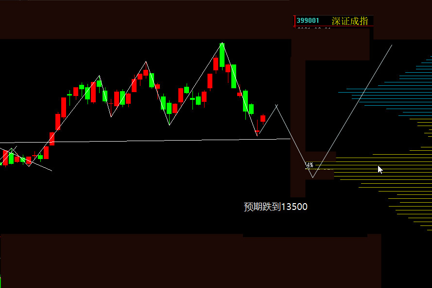 今日市场下跌到这里有了反弹,大概率是跌到一半位置,至于后面是否以时间换空间?我们还要看,从深证指数看需要跌倒13500才会止跌,到时需要看趋势三段加上底部结构,需要60分以上底部结构才可以判断止跌,从而展开牛市第三阶段上涨,所以这里反弹后需要再次下跌。