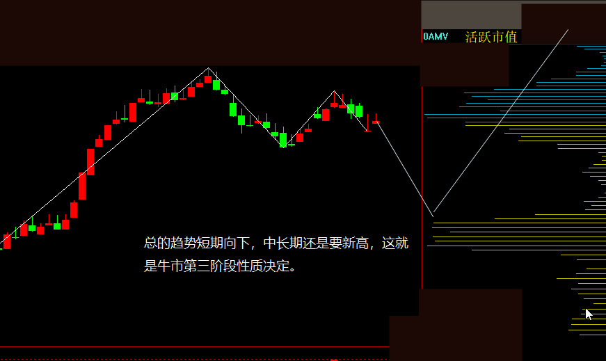 指数,我们从传统指数看,深证指数需要跌倒13500,这是一个前期平台位置,同时也和19年4月份下跌空间相吻合,当然中小市值指数还是震荡向上,虽然有回档,但是底部一直会抬高,等到传统指数跌到位,市场开始发动牛市第三阶段攻击,这个时候科技为首的中小市值股票领涨,然后走完牛市三年过程。