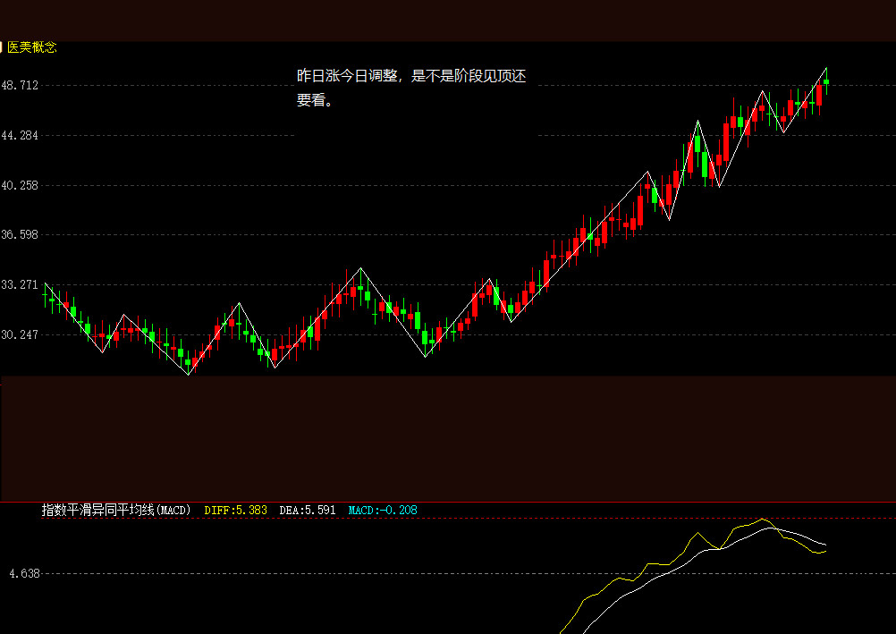 热点,今日换成白酒了,这是老概念,消费吗,医美概念今日调整,是不是阶段见顶,需要再看,目前是日线顶部构建中,科技慢慢跟随。