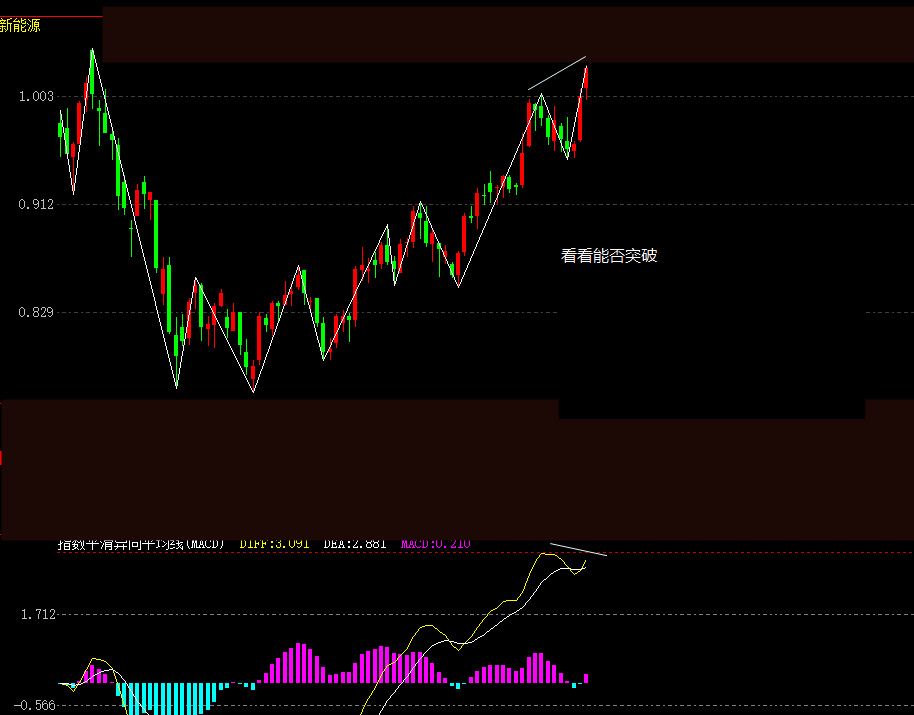 热点,今日是新能源,碳中和概念,这也是老概念,从指数上看到这里也需要闯关的,日线顶部还在高压着,继续向上需要突破顶部才行,科技板块小幅调整,但是趋势还是慢慢上涨中。