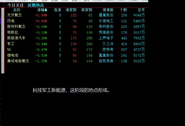 热点,连续观察,,虽然每天涨幅榜不一样,但是总体出现的热度榜还是以科技,军工,新能源为主,,所以这是还好后面三个方向