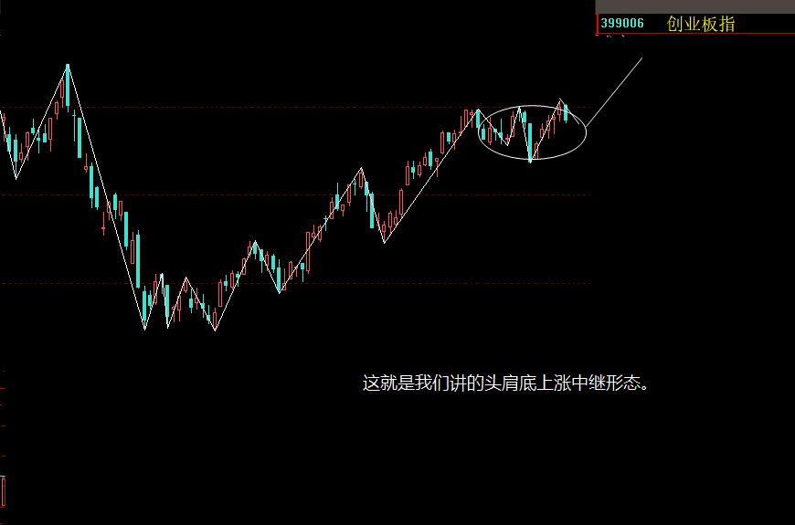 指数,传统指数典型的头肩底上涨中继形态,目前是右肩震荡,,所以今日回调属于正常,而且这里也是面临突破的位置,所以市场呈现分化和涨幅榜轮换局面,市场指数还是缓慢上攻,这也是中小市值股票缓慢上涨的写照。