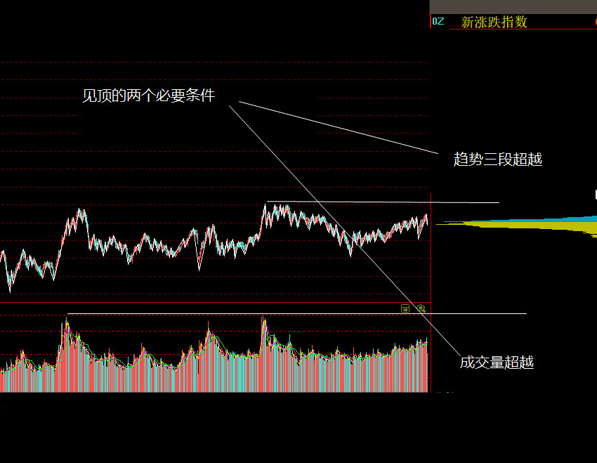 指数:传统指数看上证指数是第三阶段上涨开始的,深证指数等多数指数是上涨途中的,当然是第三阶段上涨途中的,创业板可以看作是冲顶的,当然有别与白酒板块,说到底白酒也不至于影响到创业板指数,只能说涨到位的充其量是冲顶了,科创板虽然是强势的,但是又是长期的板块,这是需要重视的指数。市场指数上我们看到,我们给出两个见顶必要条件,一个是趋势越过水平线,一个是成交量越过水平线,这两个条件不满足是不可能见顶的,这是硬道理,这样看来我们的操作就好办了,只要不满足这两个条件,那么不管途中涨跌如何,我们一如既往坚持方向大胆操作就是。