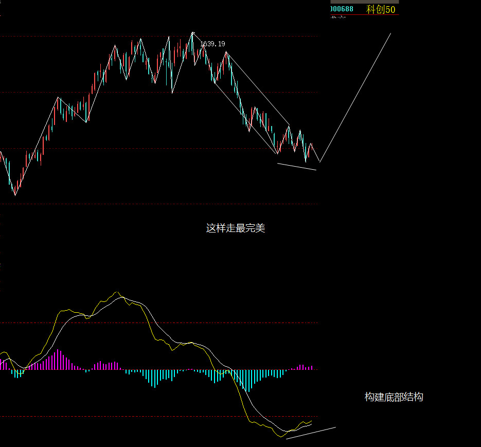 总结:趋势下跌成就阶段性底部,这里就是启动时刻,资金也有回来迹象,所以牛市第三阶段将要形成加速上涨阶段,持股待涨。