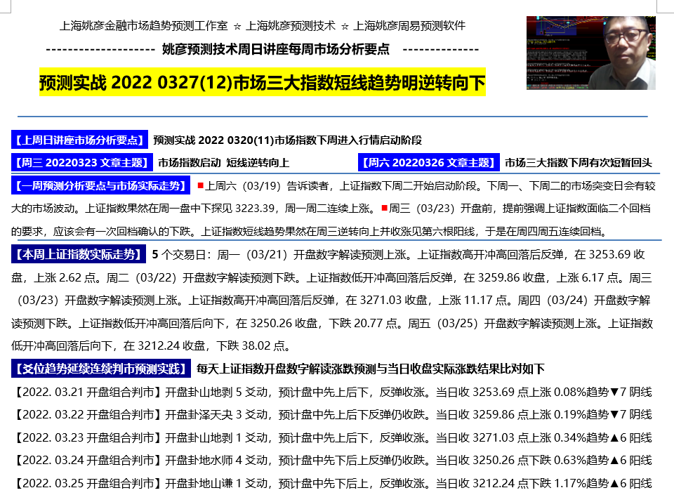 预测实战2022 0327(12)市场三大指数短线趋势明逆转向下
