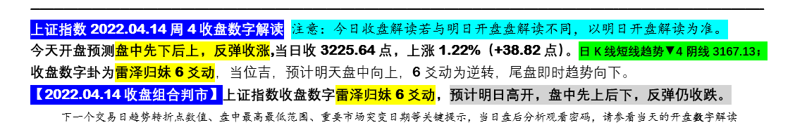 上证指数2022.04.14周4收盘数字解读