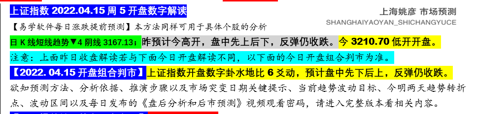 上证指数2022.04.15周5开盘数字解读