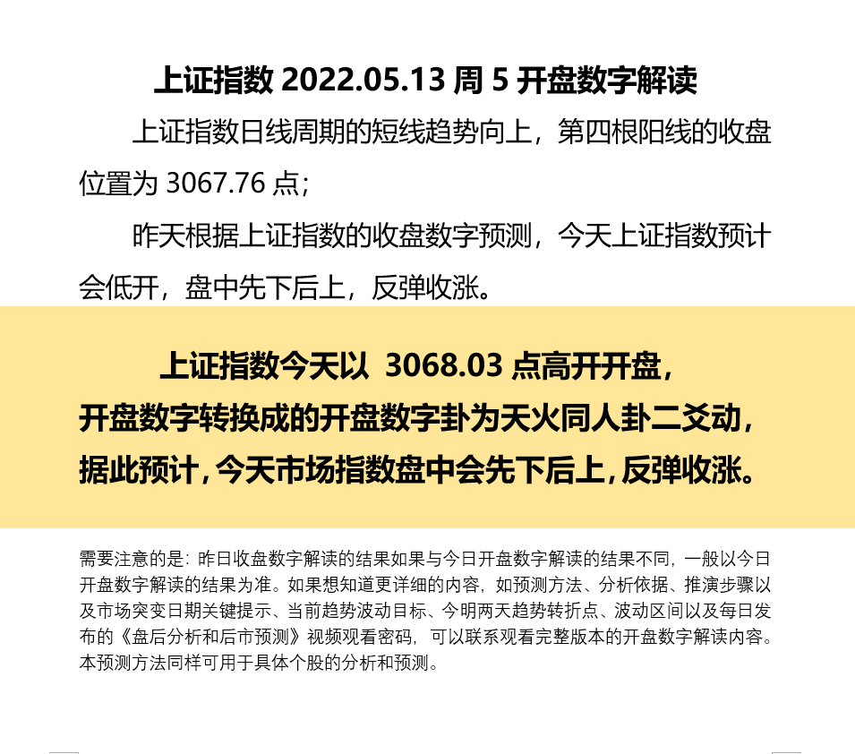 上证指数2022.05.13周5开盘数字解读