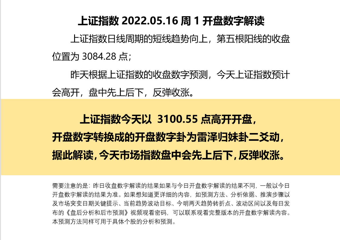 上证指数2022.05.16周1开盘数字解读