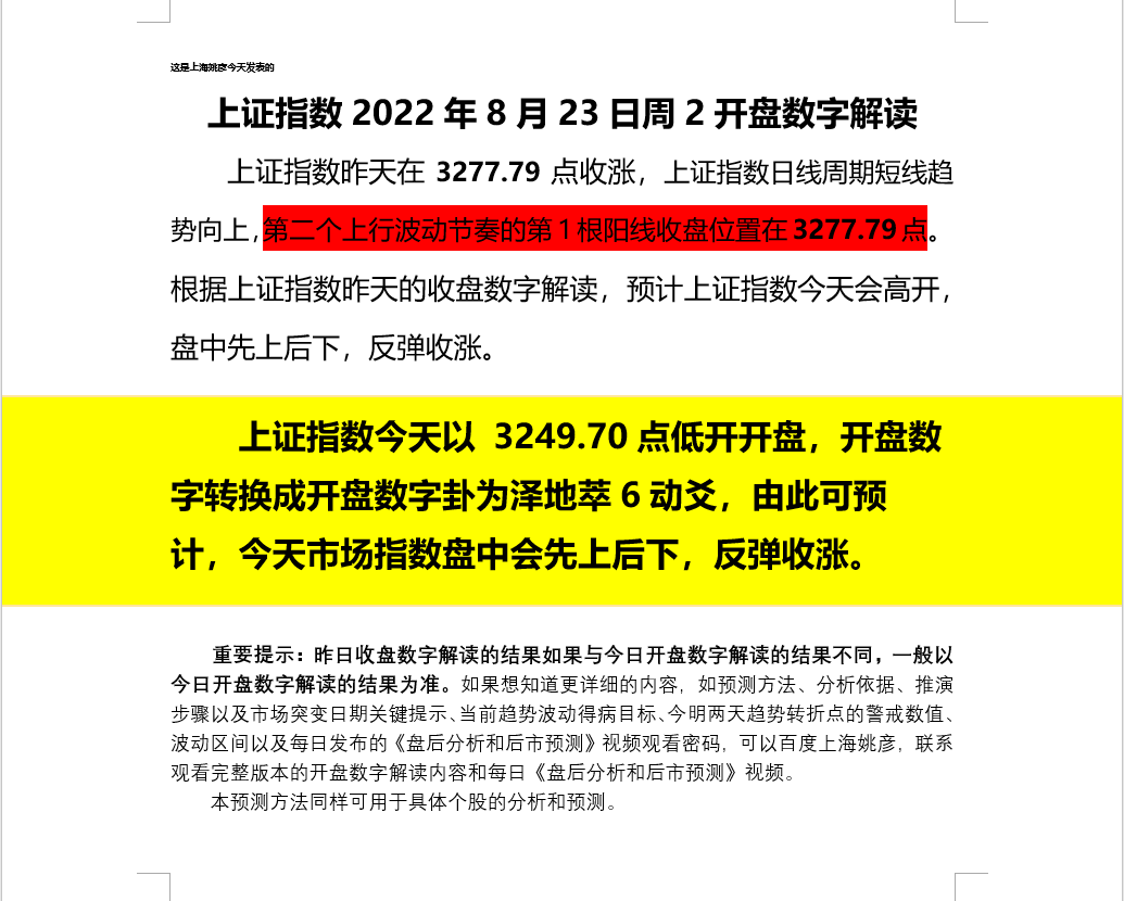 上证指数2022年8月23日周2开盘数字解读