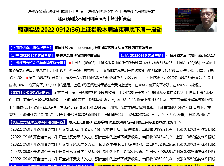 预测实战2022 0912(36)上证指数本周结束寻底下周一启动