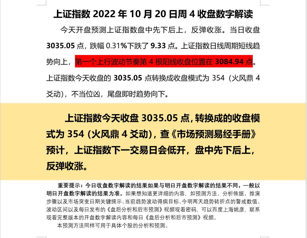 上证指数2022年10月20日周4收盘数字解读