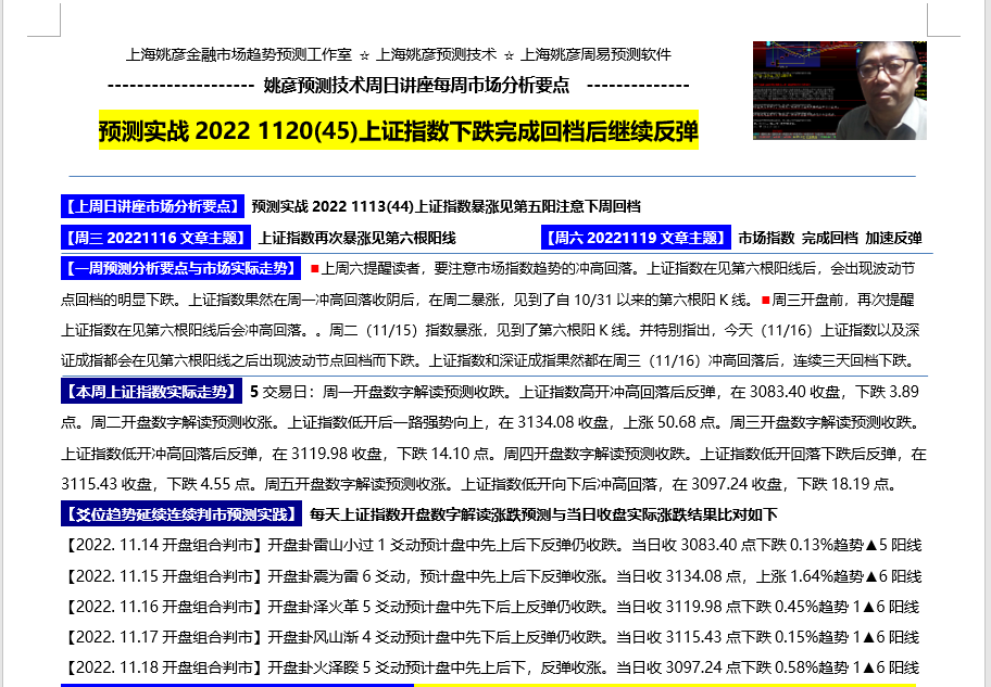 预测实战2022 1120(45)上证指数下跌完成回档后继续反弹