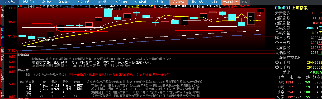 今日收盘3206.52上涨0.49%,见5根阳线 明日见3268.86向下逆转