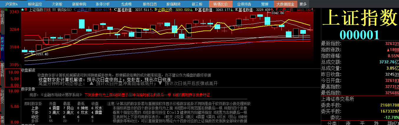 今日收盘3263.31上涨0.55%,见5根阴线