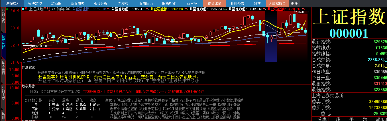 今天开盘模式为224,预计当天盘中先上后下,反弹仍收跌