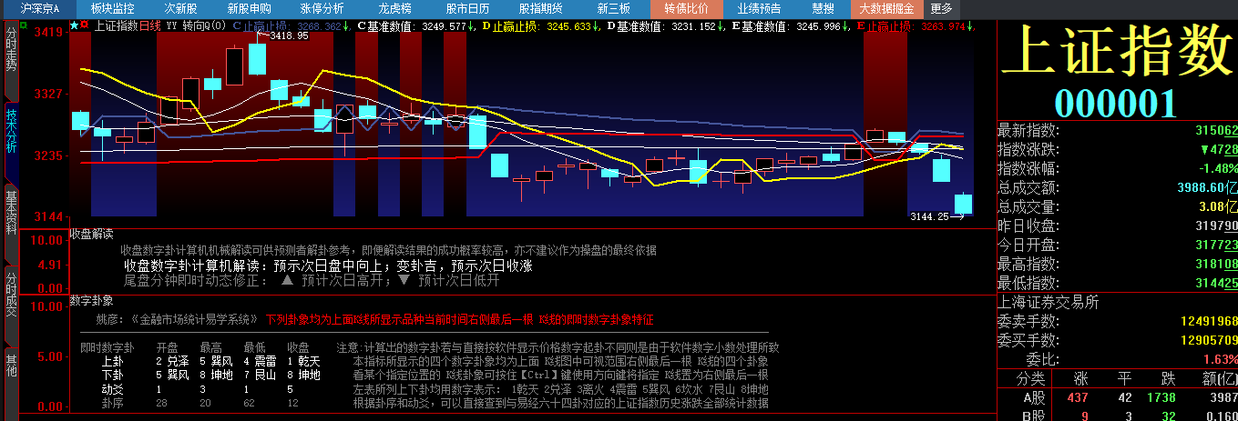 今日收盘 3150.62,下跌 1.48 %,见 4 根阴线