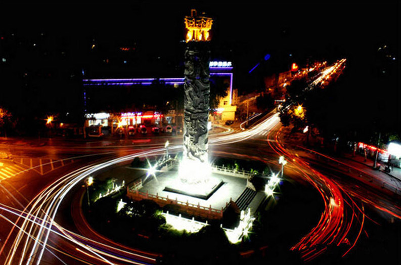 绝对是洛阳最霸气的地标物,九条巨龙盘旋的大石柱的顶端,端放着一座仿制的中国青铜时代的象征——司母戊鼎。白天看起来气派非凡,夜晚在灯光照射下,聚龙纹络清晰,看起来活灵活现,远观恢弘大气,近看,触人灵魂,九龙鼎的夜景是非看不可的。