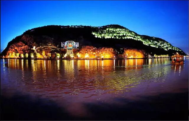 夜幕下的龙门在千余盏灯饰的装扮下,南北1公里的石窟遗存金碧辉煌,让我们充分领略龙门石窟佛教造像的神奇风采。借助声光电等现代科技,这时我们看到的不再是一座座灰色的石像,而是穿着各色服饰的人像,景象令人叹为观止,让你不禁会迷上夜晚的龙门石窟。