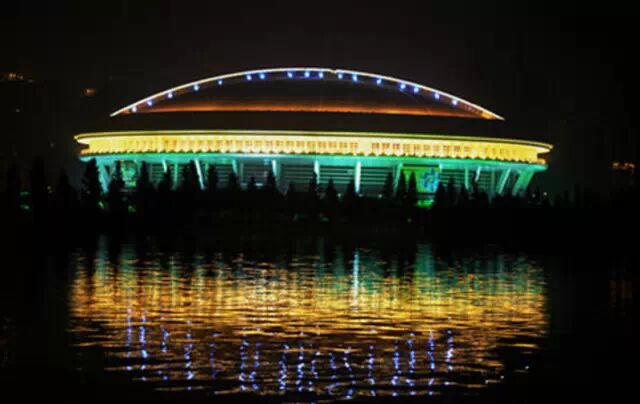 洛阳的美有很多种,优雅的美,厚重的美,还有新区现代的美,夜晚,灯都亮了起来,整个新区体育馆就像被罩上一层华丽的霓裳,红绿相间,光影交错,不由自主的拿起手中的手机拍摄这一刻的美。