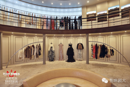 电影《小时代》1、2部在全国上映后,影片中主角们的时尚百变造型成为一大亮点。此次拍摄电影《小时代3:刺金时代》,郭敬明再次邀请了时尚大师、曾担任《Vogue》创意总监的黄薇担任电影的艺术总监。1、2部中一眼望不到头的步入式顾里的衣帽间已经点燃很多观众的热血,在《小时代3》中为实现升级突破,剧组更采用棚内搭建,上下两层360度全景打造。从衣服区到鞋子区再到包包区,无不彰显大气的时尚质感。艺术总监黄薇回忆:“衣帽间要搬很多东西进来。拉出来、打包,八个人花了一整天的时间。柯震东对衣帽间的建造直呼:“有点夸张,做的有点太大”,谢依霖更调侃其为“私人招待所”。小编觉得郭敬明确实有点儿玩飘了,一部电影的重点应该在剧情上,而不是夸张得过分的衣帽间,之前很多人对《小时代》1、2的诟病也源于此。
