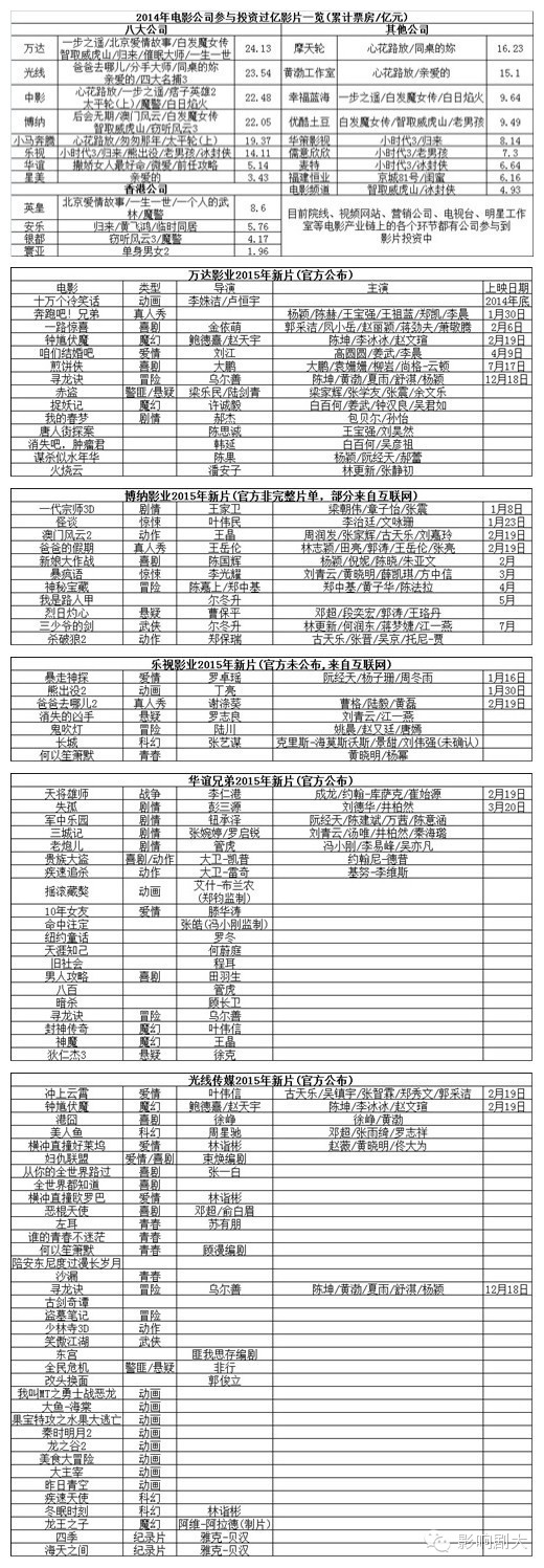 1、2015国产电影看什么?五大民营公司片单公布