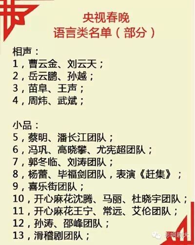 历年春晚中,语言类节目总是备受瞩目,往往一台晚会的成功与否都取决于此。然而今年将有超10个语言节目入围联排,已经创了近几年新高,其欢乐程度已经可见一斑。此外,今年的春晚也下定决心尽量避免网络流行词的回炉,以更多地创造新的笑料和新的流行词汇。举国同庆、欢聚一堂的时刻,怎能少得了春晚老常客,冯巩在今年已是第三十次冲击春晚,带来温情相声剧;蔡明则是第二十二次,仍与老搭档潘长江合作,延续以往节目的毒舌风;另一春晚常客郭冬临则与演员刘涛一齐为大家奉上不一样的新型笑料。再看春晚新生代,开心麻花和喜乐街都已经安全过审,岳云鹏也终于跨越重重考验,看到了这些人名字的出现,小编都觉得,这台晚会似是要活跃起来了。其实春节就是给了一个家人团聚的理由,春晚,就是家人聚首时的一个调剂,用平和的心态和公正的目光看待春晚就好,大可不必过多吹毛求疵,欢乐至上,找茬无益;再说一句,赵本山已成过去时,看谁能顶半边天。