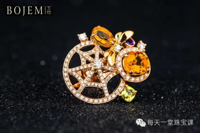 金色是在宝石界非常有地位的颜色,因为珠宝的世界里,除了宝石本身的颜色呈现金色会非常亮眼之外,它还可以作为搭配金属被设计成与宝石相辅相成的首饰。