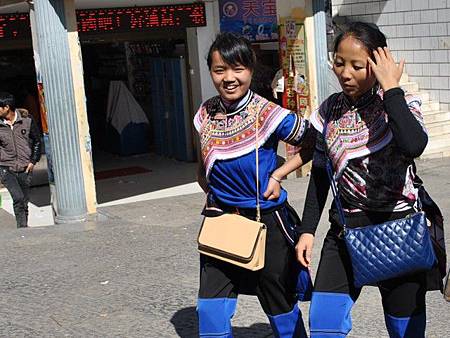 接着,我们去逛新街镇的集市,这里比胜村的集市要热闹的多,人来人往的,姑娘们穿的花枝招展,年纪大一点的也不遑多让,各种色彩的服装让人眼花了乱,我不停着按快门,此等风情实在少有啊!