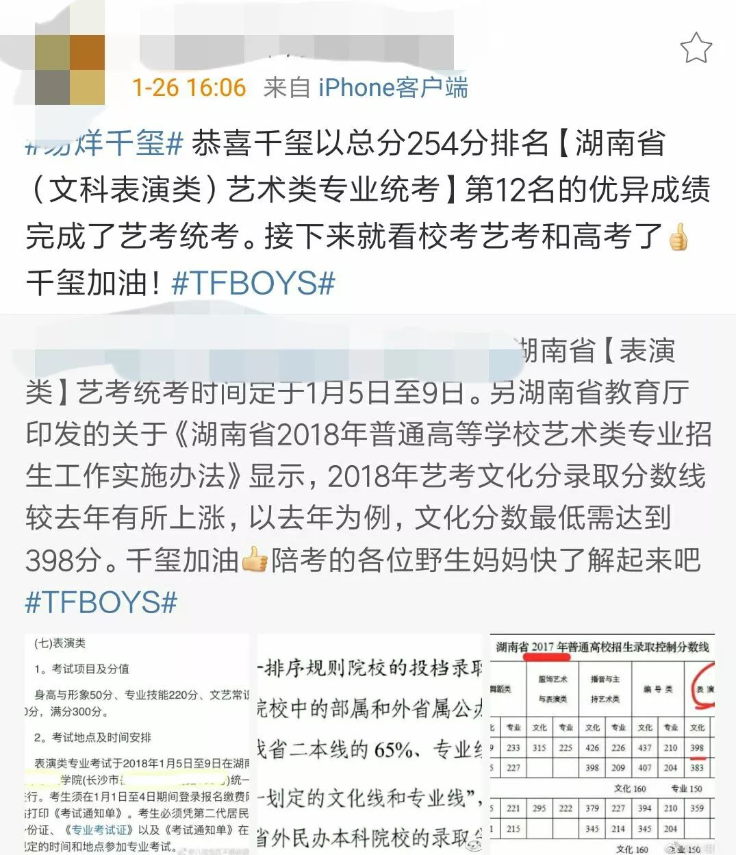前几天还爆出,易烊千玺的艺考成绩在湖南省排了前几名!