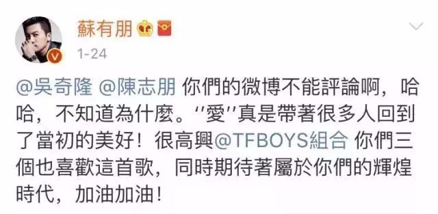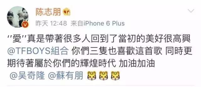 苏有朋和陈志朋也发了微博,表达了对TFboys的祝福和期待!