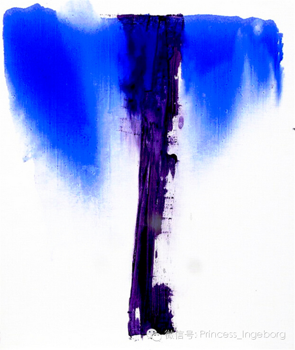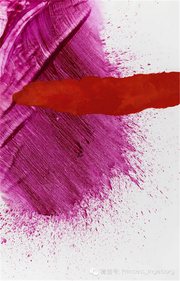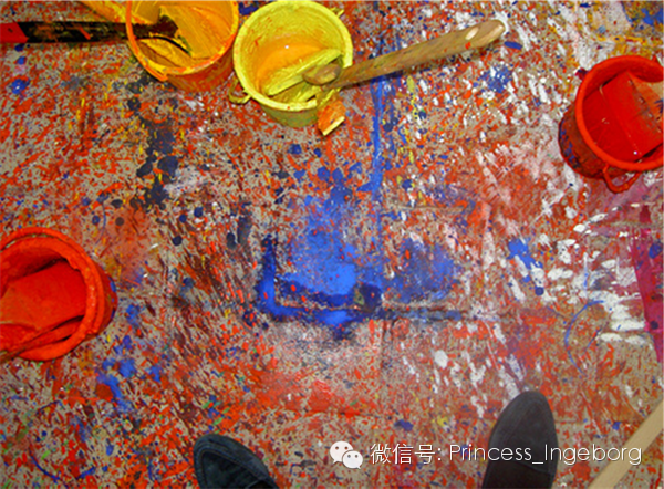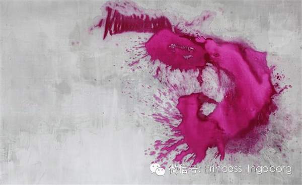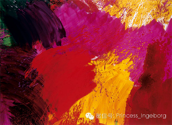在英格宝公主的作品中,可以看到很多“偶然因素”。她把颜色倾倒在画布上,在流动的作用下,组织生成出具有韵律节奏的画面结构。