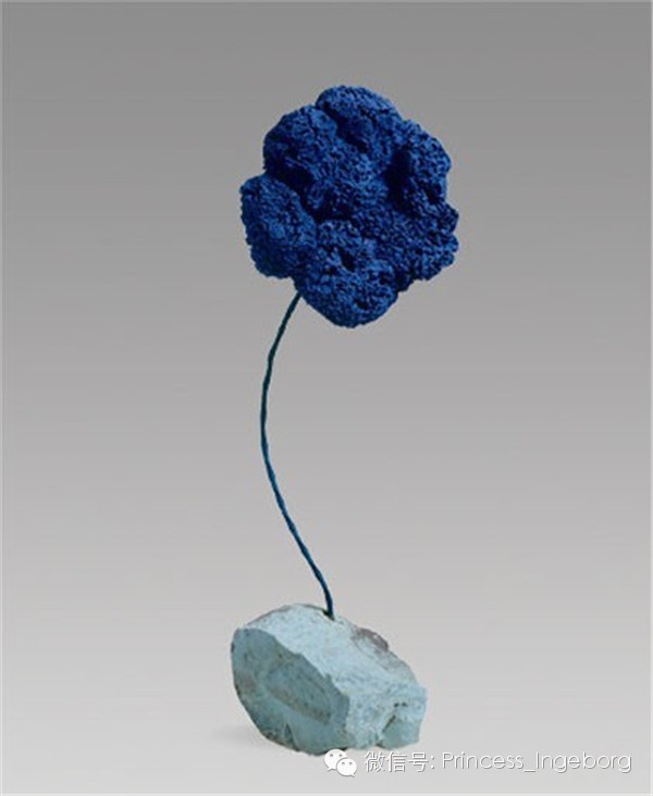 除了上述勉强可称之为绘画的平面作品之外,克莱因还利用海绵、石膏和树脂等材料创作了大量雕塑。